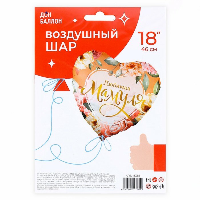 Воздушный шар фольгированный Falali cердце, Любимая мамуля, 46 см интересное: