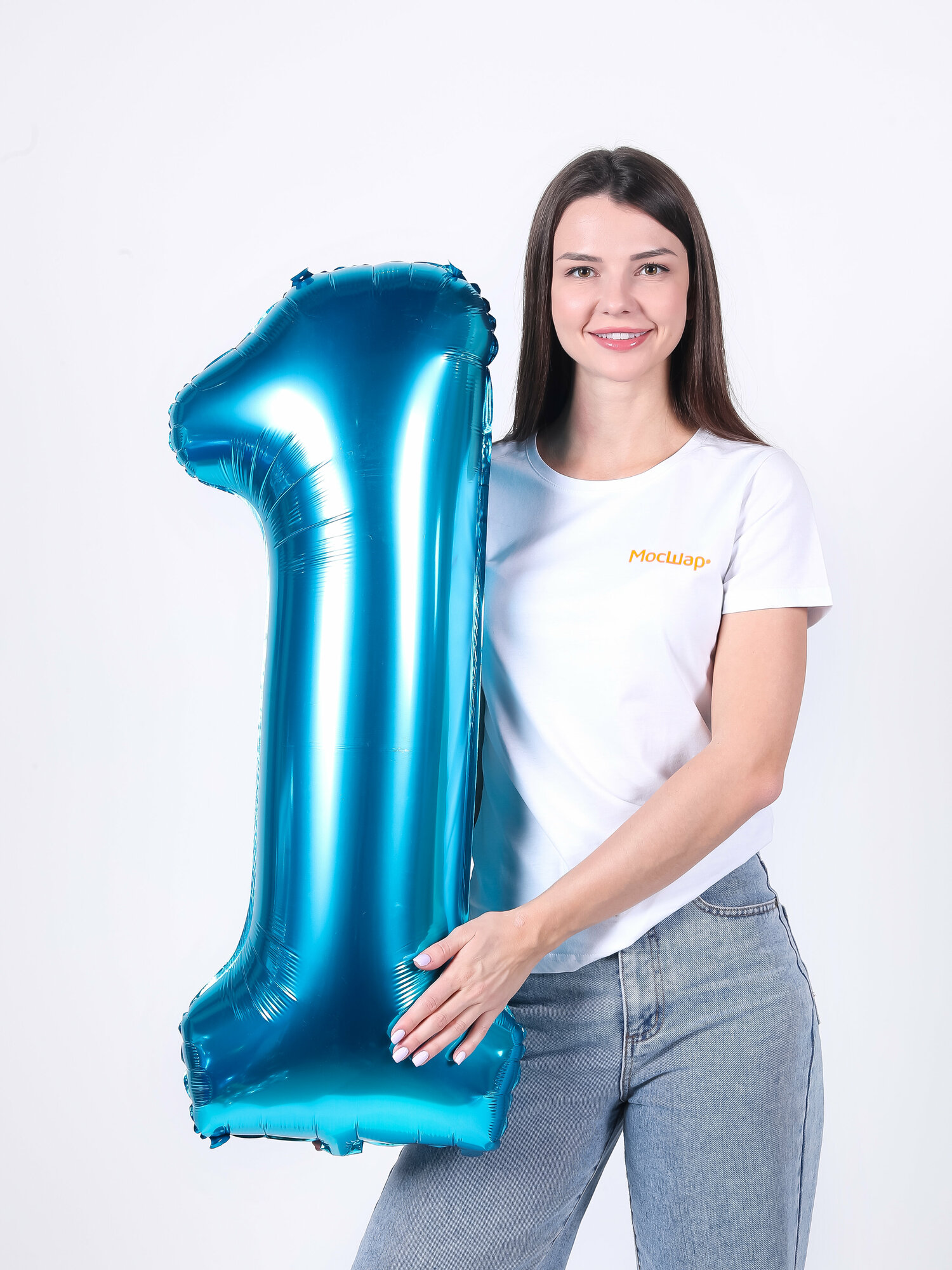 Фольгированный воздушный шар цифра 1 один синий 100см - Мосшар