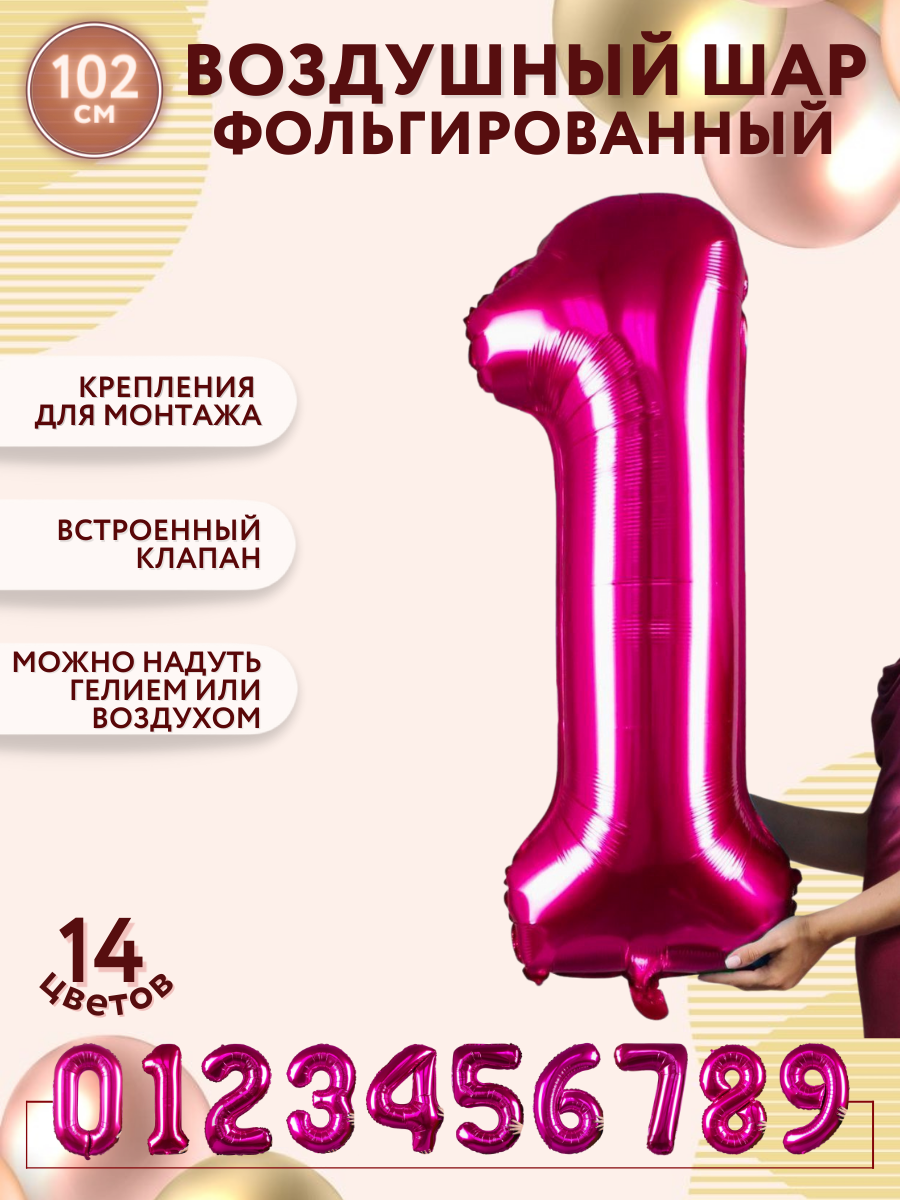 Купить Фольгированный воздушный шар цифра 1 один фуксия 100см - Мосшар