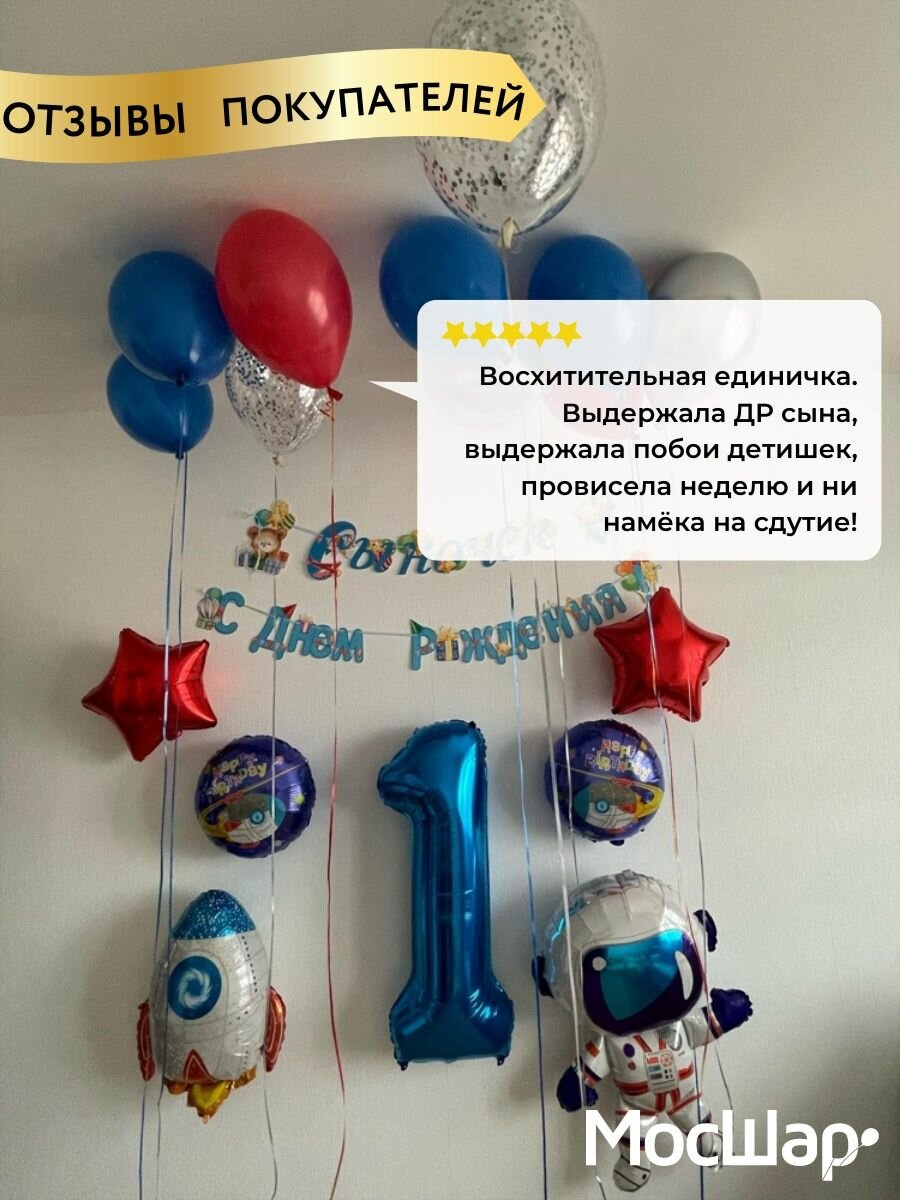 Фольгированный воздушный шар цифра 1 один синий 100см - Мосшар