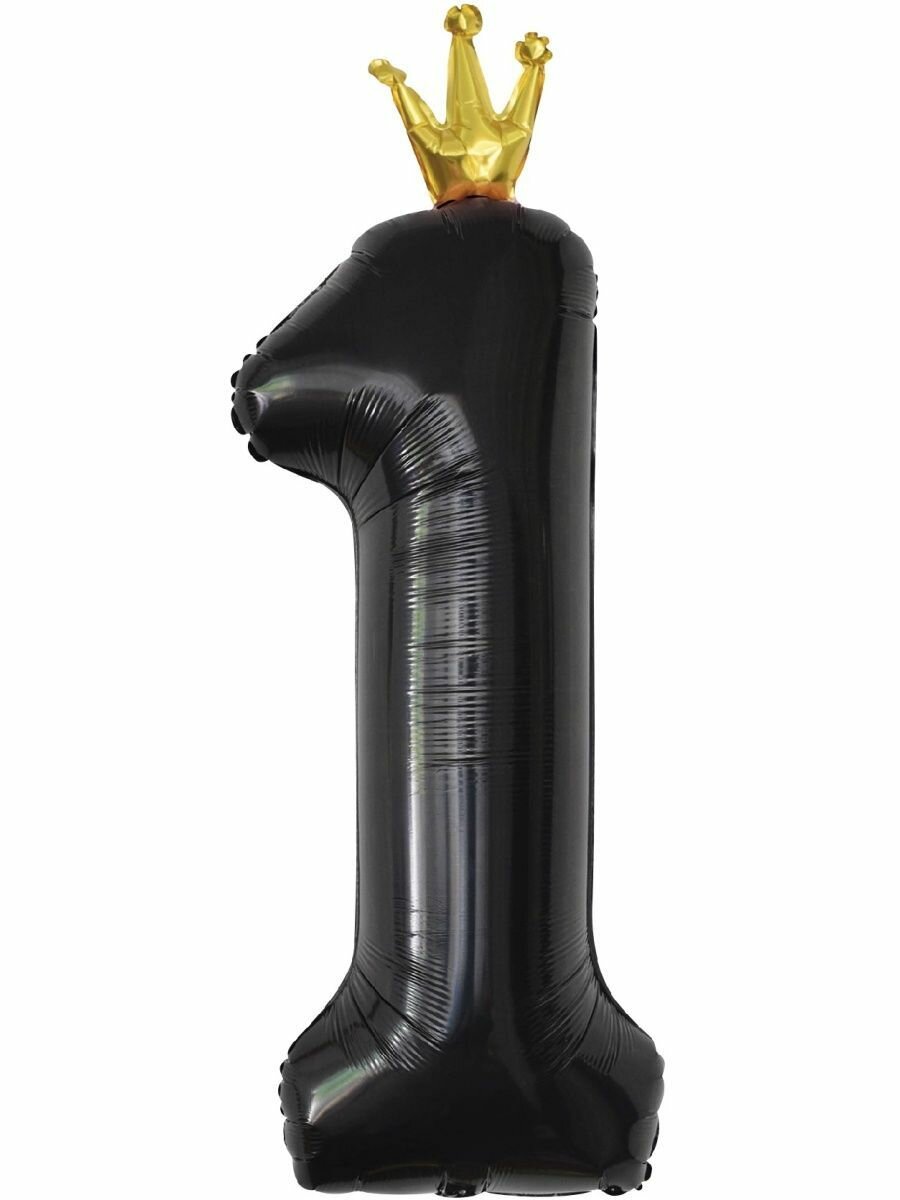 Купить Фольгированный воздушный шар цифра 1 один черная с короной