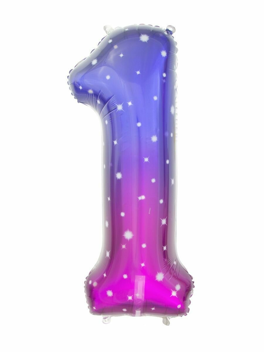 Купить Фольгированный воздушный шар Космос, цифра 1, градиент розово - фиолетовый, высота 86см / МосШар