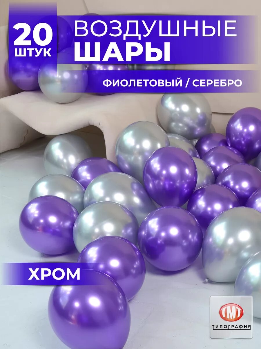 Купить Шары воздушные от бренда Типография "ТМТ" , хром, цвет фиолетовый + серебро, набор 20 штук