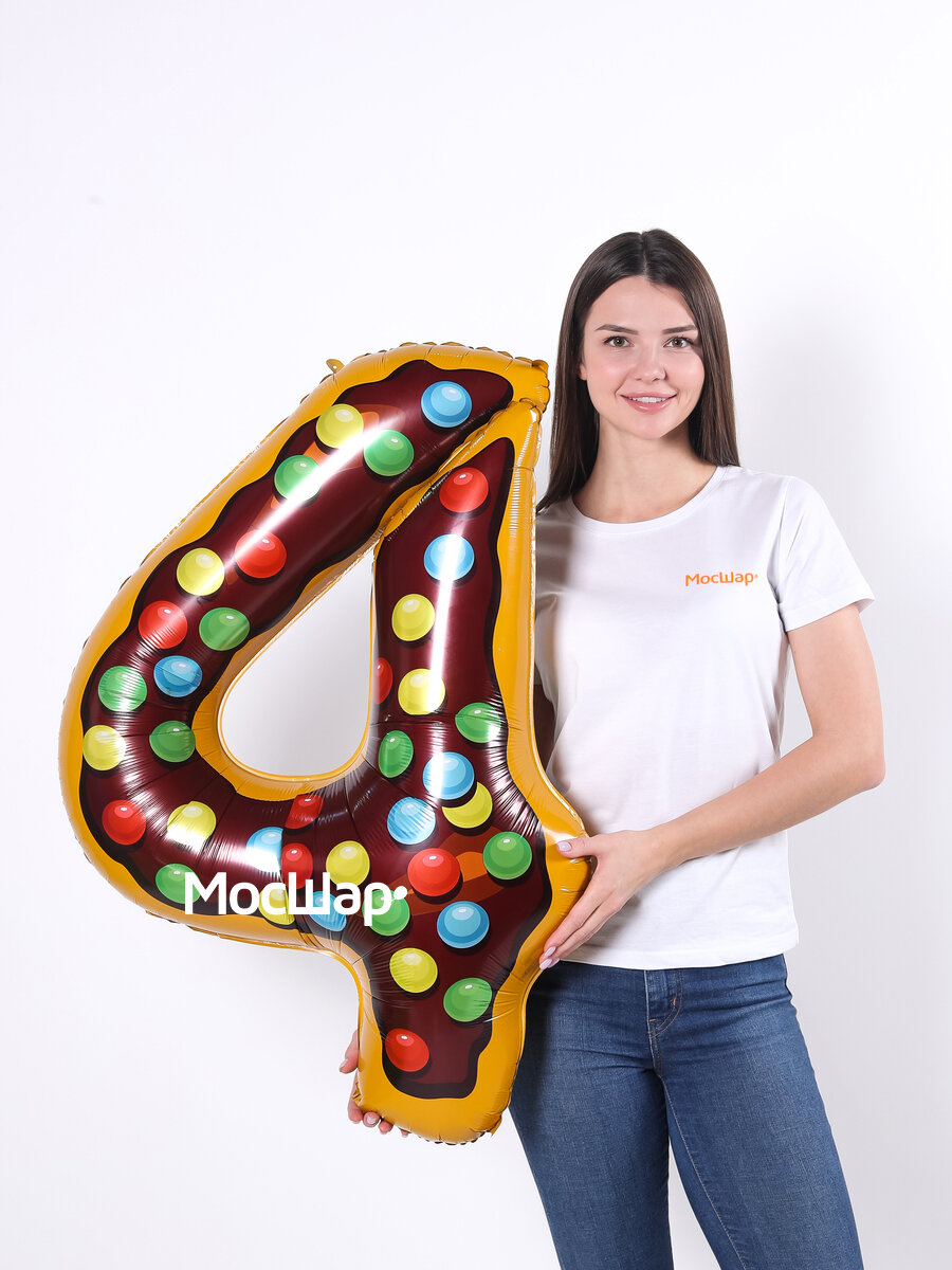 Купить Фольгированный воздушный шар цифра 4 четыре сладости 86см - Мосшар