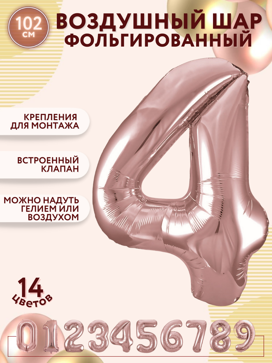 Купить Фольгированный воздушный шар цифра 4 четыре розовое золото 100см - Мосшар