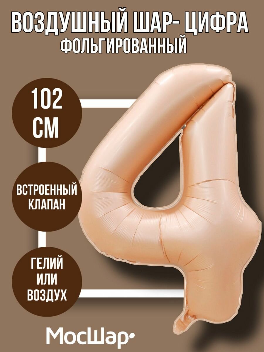 Купить Фольгированный воздушный шар цифра 4 четыре бежевый 102 см - Мосшар