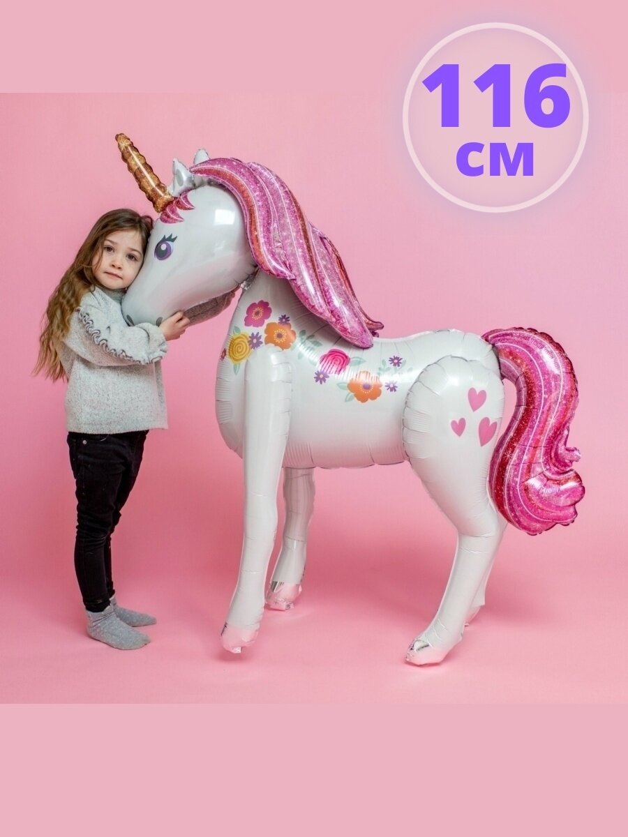 Купить Воздушный шар ходячий из фольги Единорог розовый большой