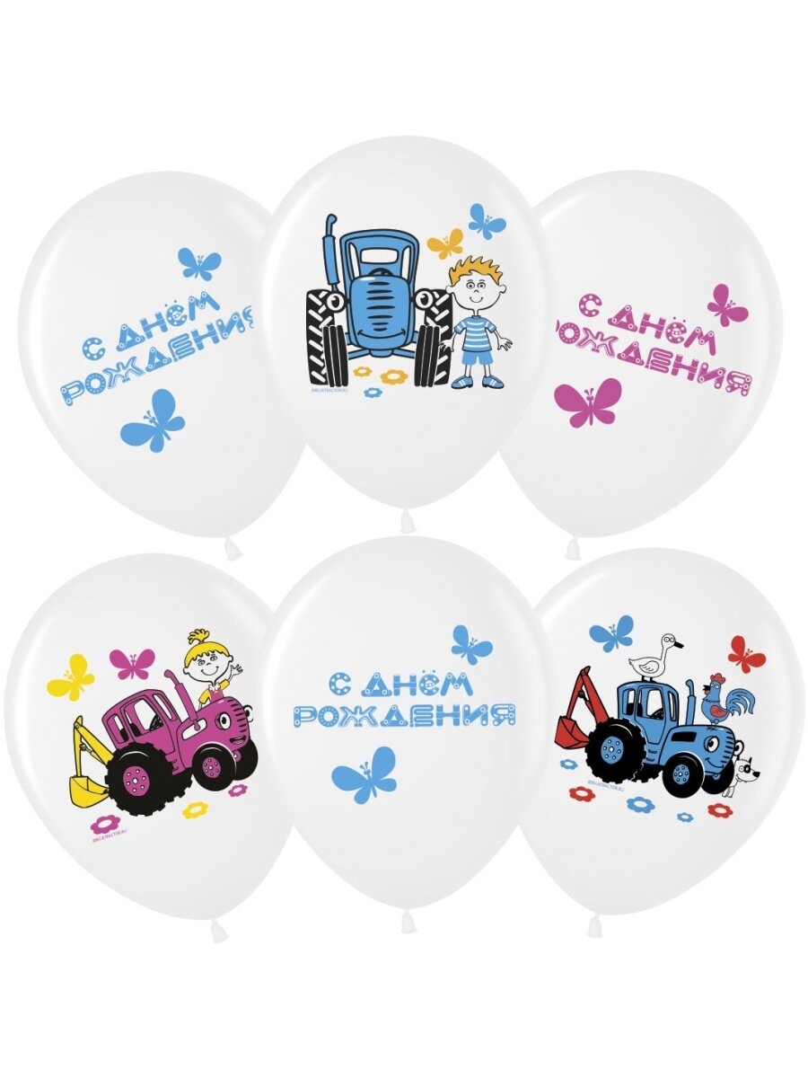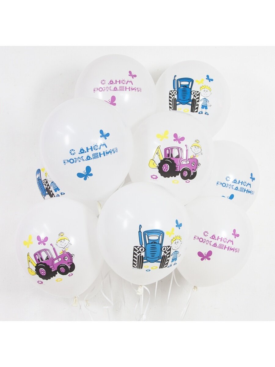 Воздушные шары "Синий трактор" с принтом, 10 штук