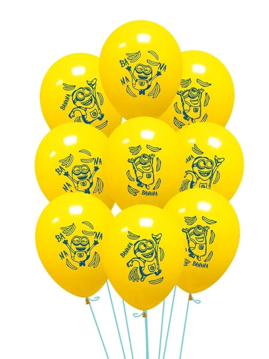 Набор воздушных шаров МосШар "Миньоны", круглые, овальные, капли, латекс, 30 см, 10 штук, желто-голубые