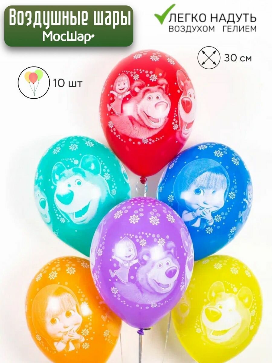 Купить Воздушные латексные шары Маша и Медведь, 10шт