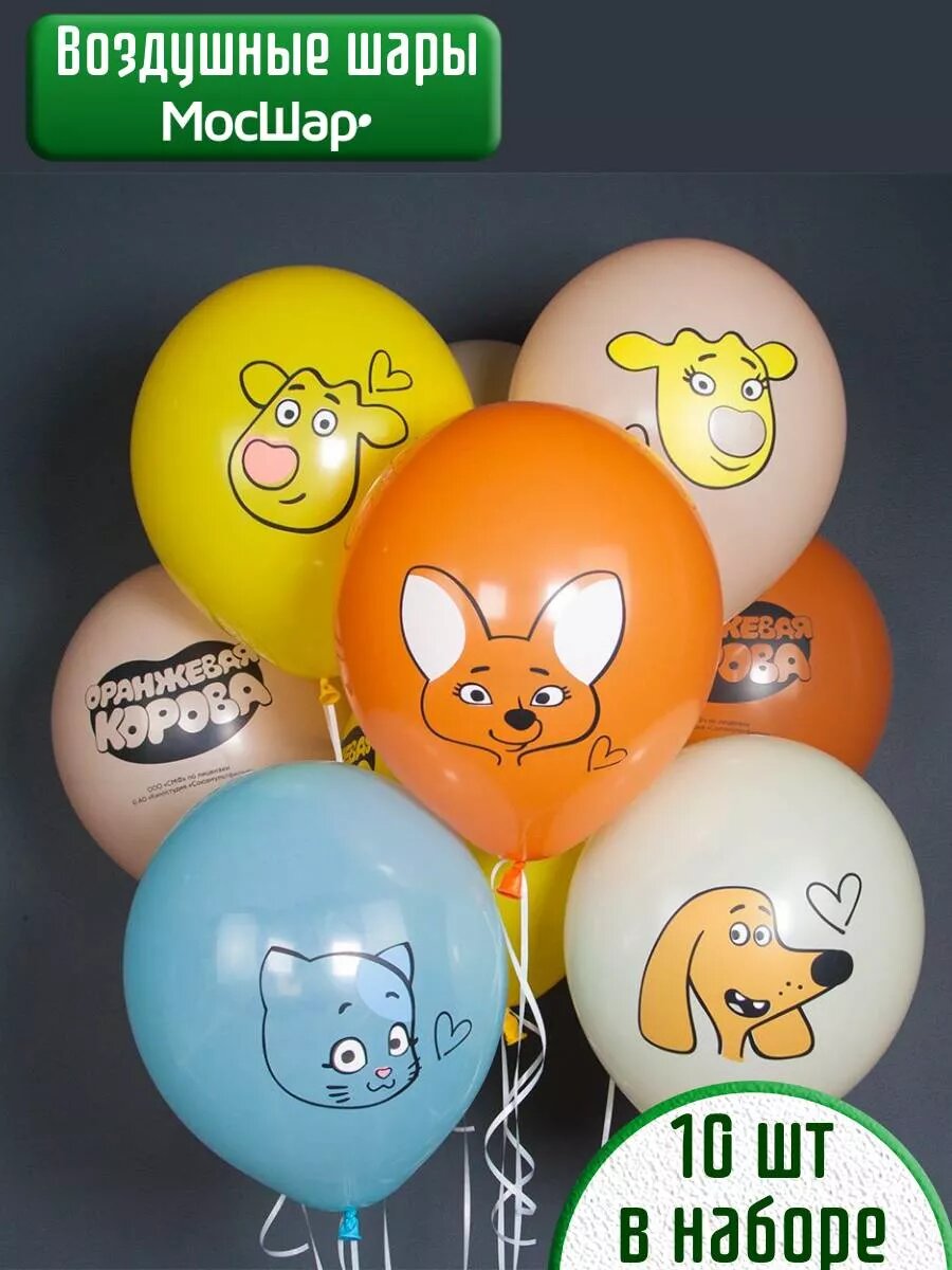 Купить Набор воздушных шаров МосШар "Оранжевая Корова", 10 штук, высота 30см