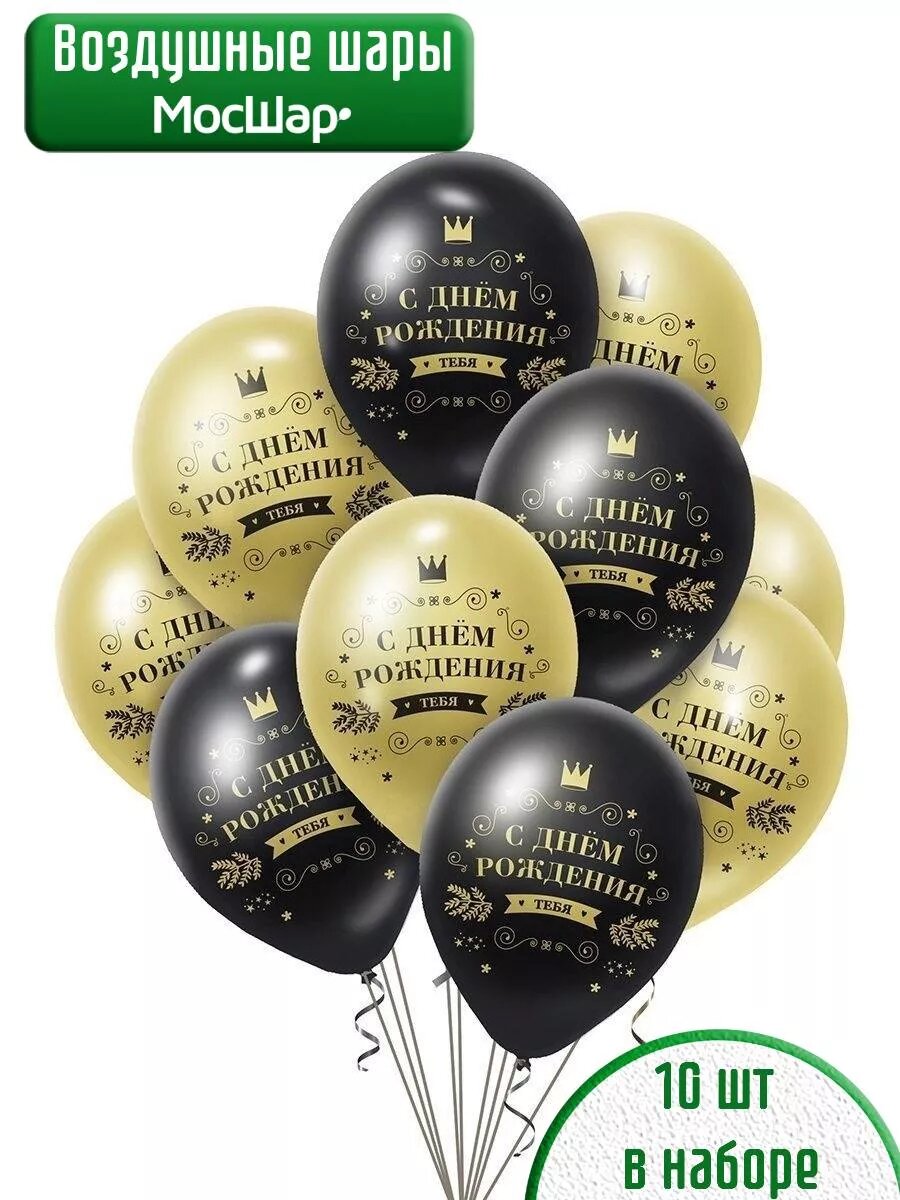 Купить Набор воздушных шаров с рисунком С днем рождения корона - 10шт 30см