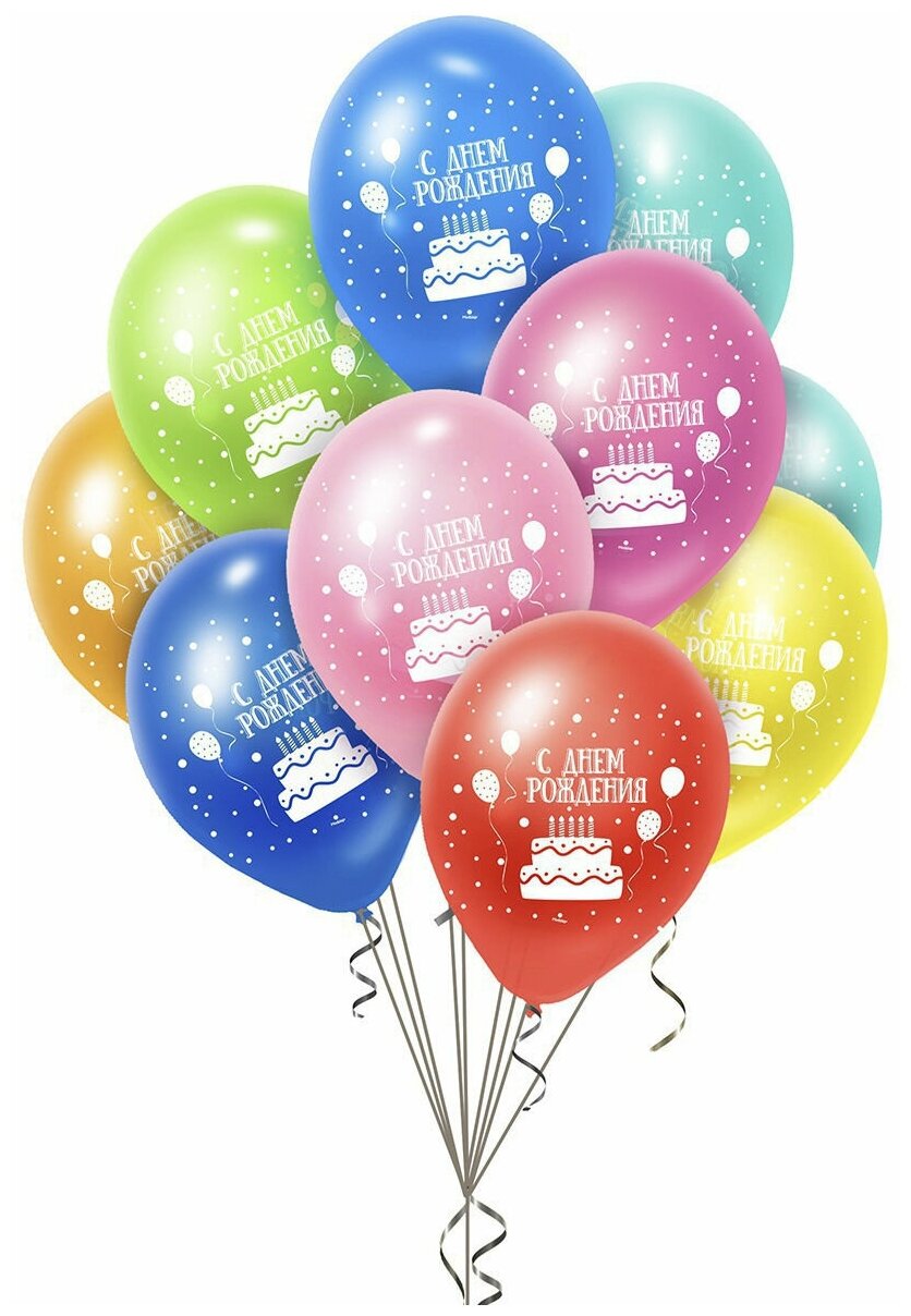 Купить Набор воздушных шаров с рисунком С днем рождения торт - 10шт 30см