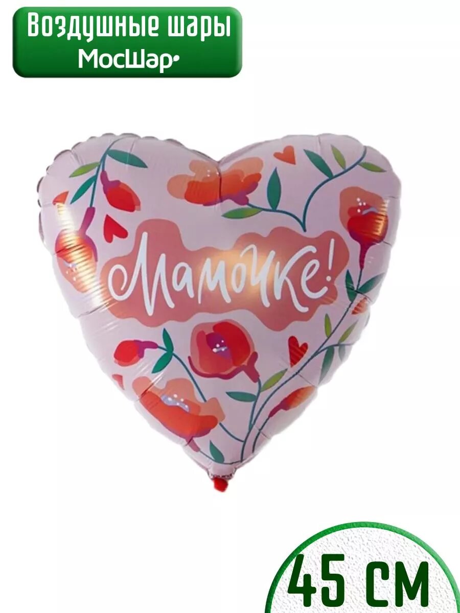 Купить Воздушный шар фольгированный в форме сердца Мамочке, 45см, МосШар