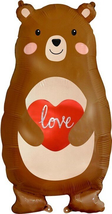 Купить Воздушный шар фольгированная фигура Мишка с сердцем 78см