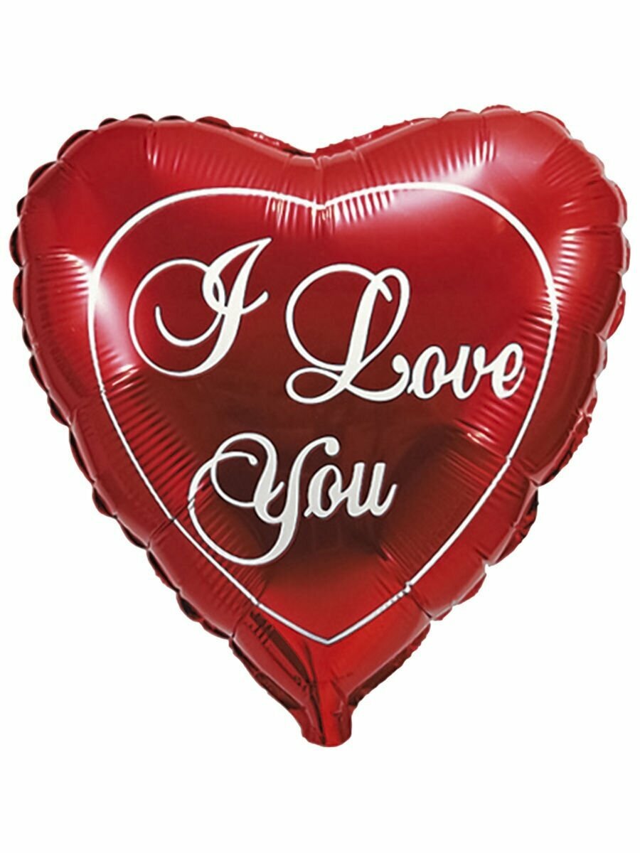 Воздушный шар МосШар ф форме сердца с надписью "I love you" 45 см