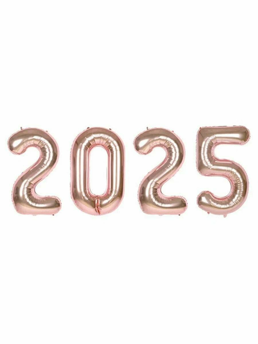 Купить Набор воздушных шаров Мосшар "2025", фольгированные, глянцевый, 102см, 4шт, розовое золото