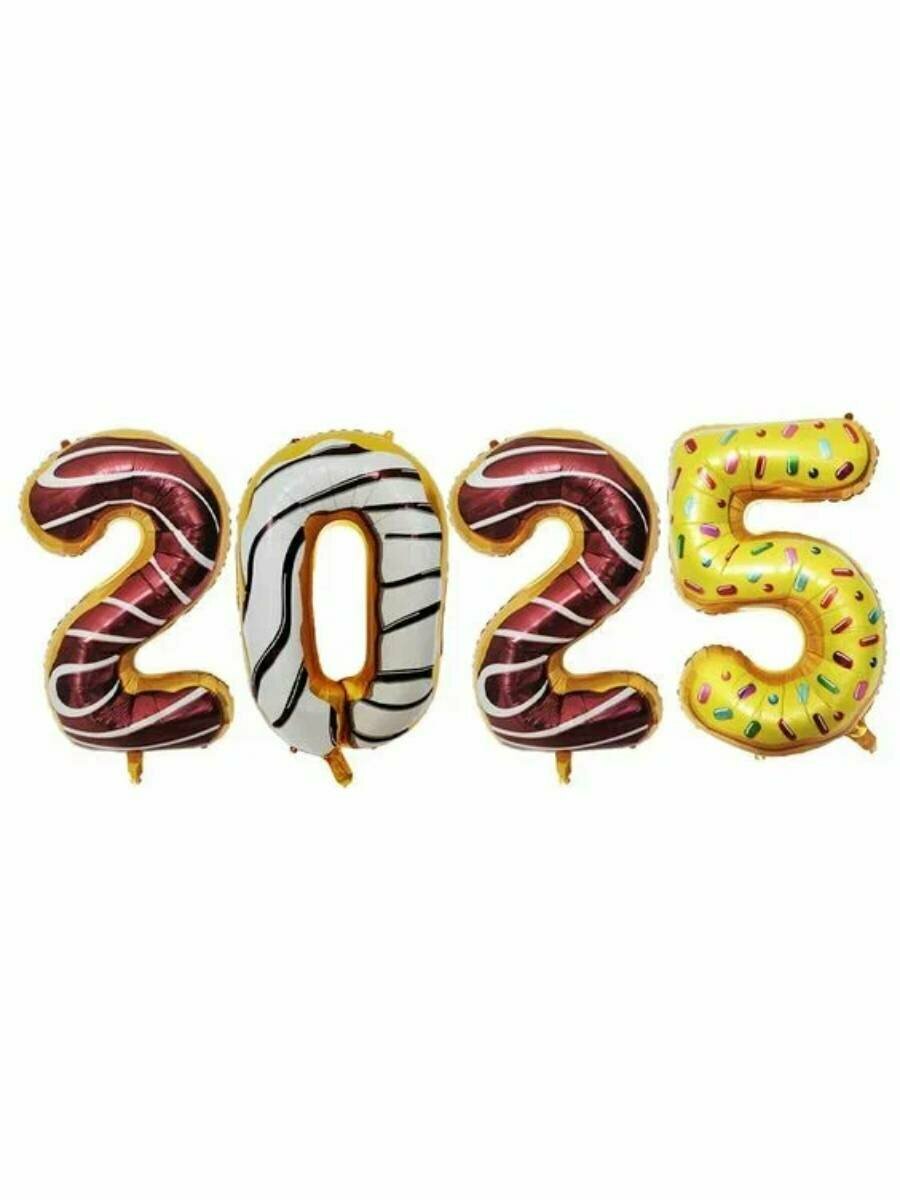 Купить Воздушные шары Мосшар "2025 Пончики", глянцевые, фольгированные, высота 102 см, 4 шт