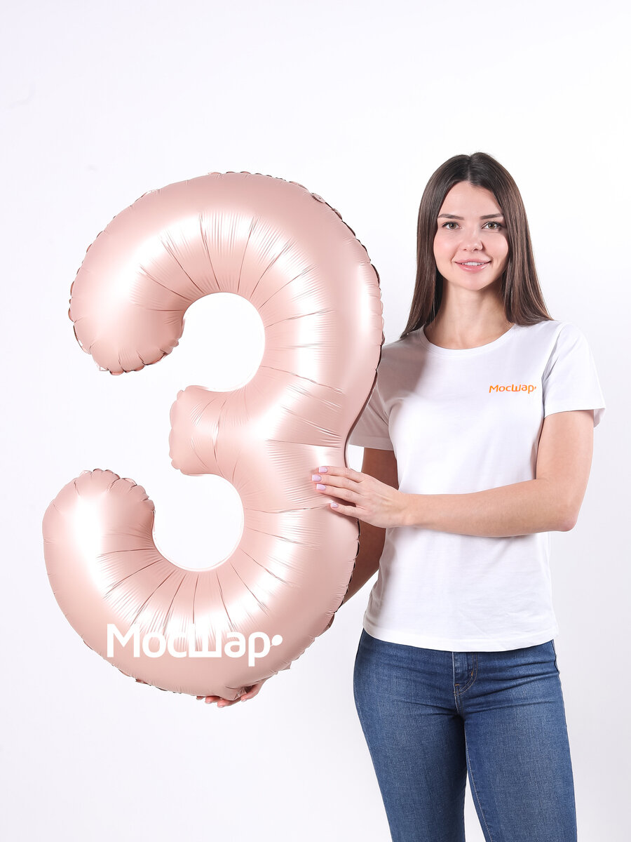 Фольгированный воздушный шар цифра 3 три розовое золото 100см - Мосшар