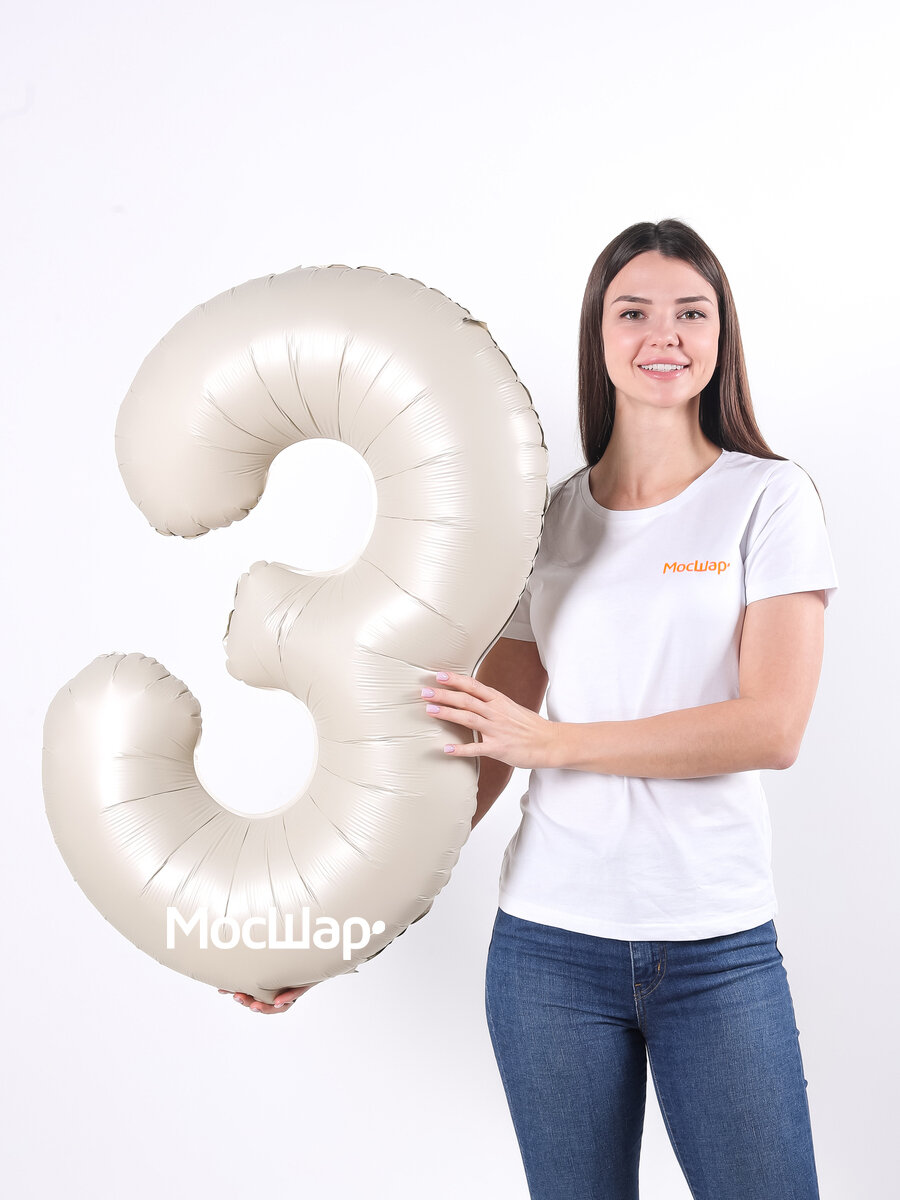 Купить Фольгированный воздушный шар цифра 3 три айвори 100см - Мосшар