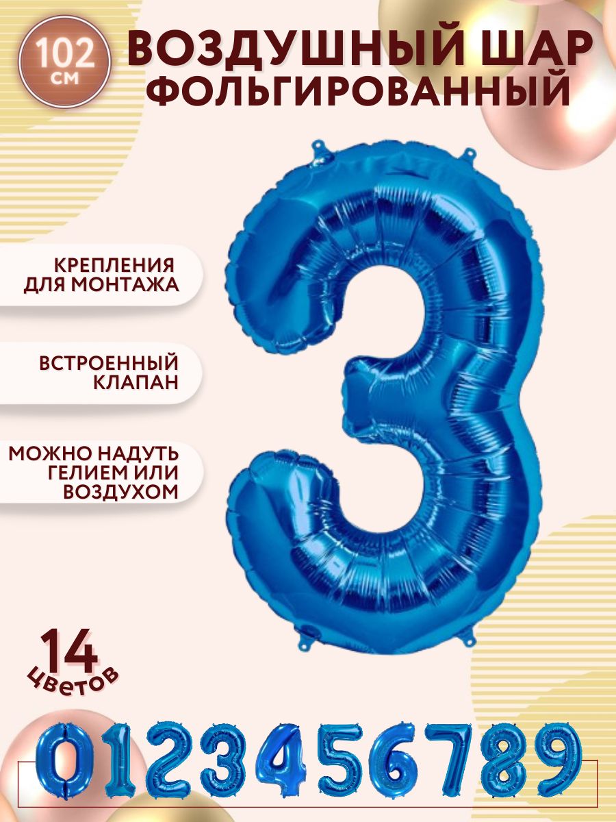 СохранитьФольгированный воздушный шар цифра 3 три синий 100см - Мосшар интересное: