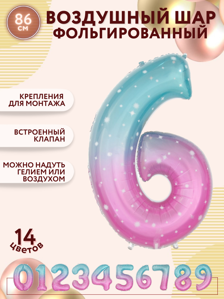 СохранитьФольгированный воздушный шар Искры, цифра 6, разноцветный, высота 86см / Мосшар интересное: