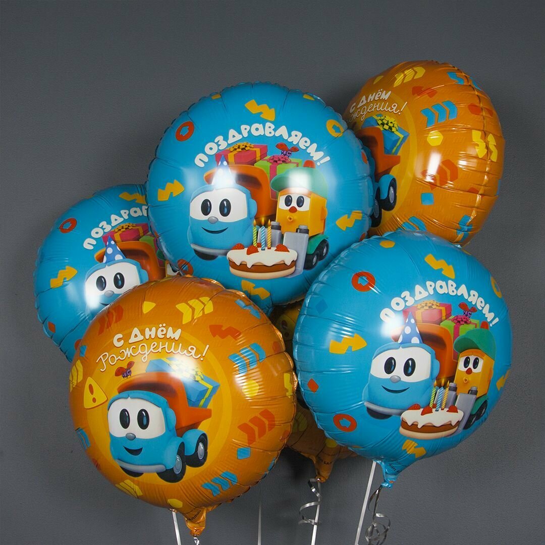 Воздушный шар из фольги. Круг, Грузовичок Лёва, Подарки на День Рождения (18/46 см), 1 шт. в уп.