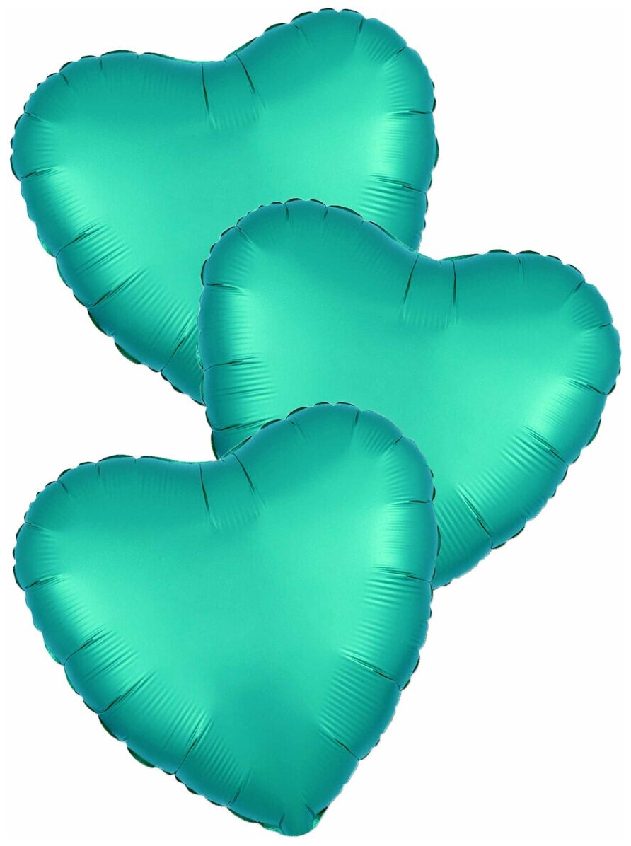 Воздушные шары фольгированные Agura Сердца, Сатин, Бирюзовый (Тиффани), 46 см, набор 3 шт интересное: