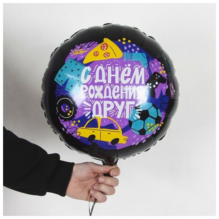 Воздушный шар фольгированный Falali круглый, С Днем рождения, друг, черный, 46 см интересное: