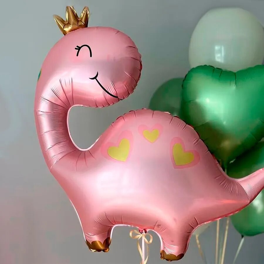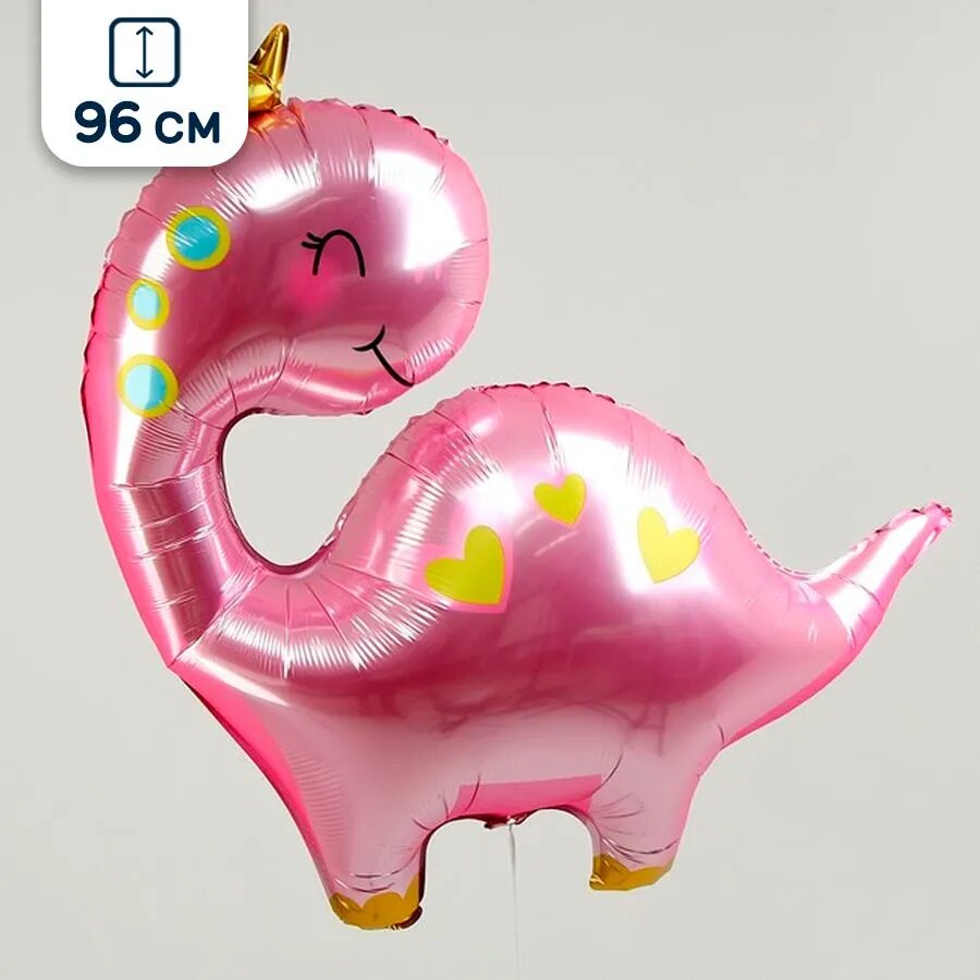 Фольгированный воздушный шар "Дино", 96см, с клапаном, розовый интересное: