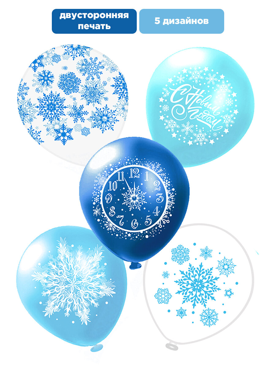 Купить Шарики воздушные с надписями для праздника Новый год "Снежинки" 10 шт