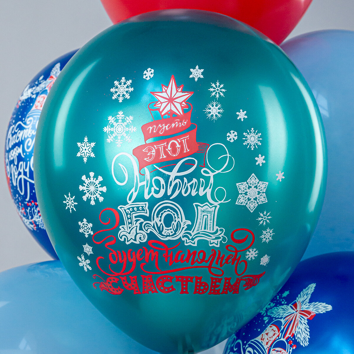 Купить Шарики воздушные с надписями для праздника Новый год "Мечты сбываются в Новом году!" 10 шт