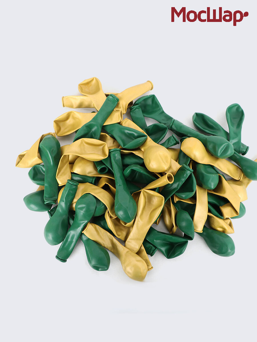 Купить Набор воздушных шаров МосШар 13см, 100шт, золото-зеленый