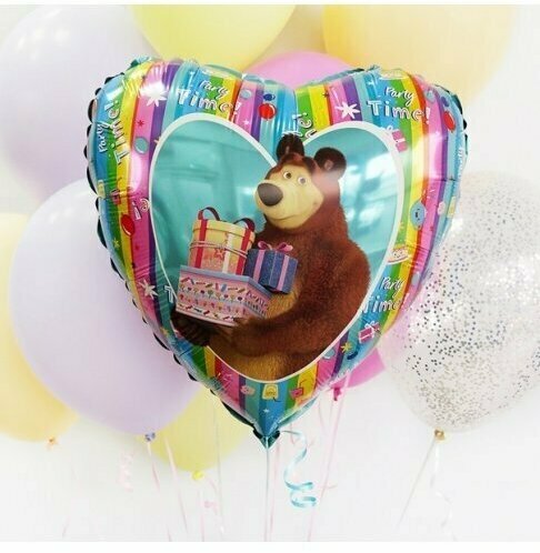 Воздушный шар фольгированный Grabo сердце на день рождения девочки Маша и Медведь, радуга, 46 см интересное: