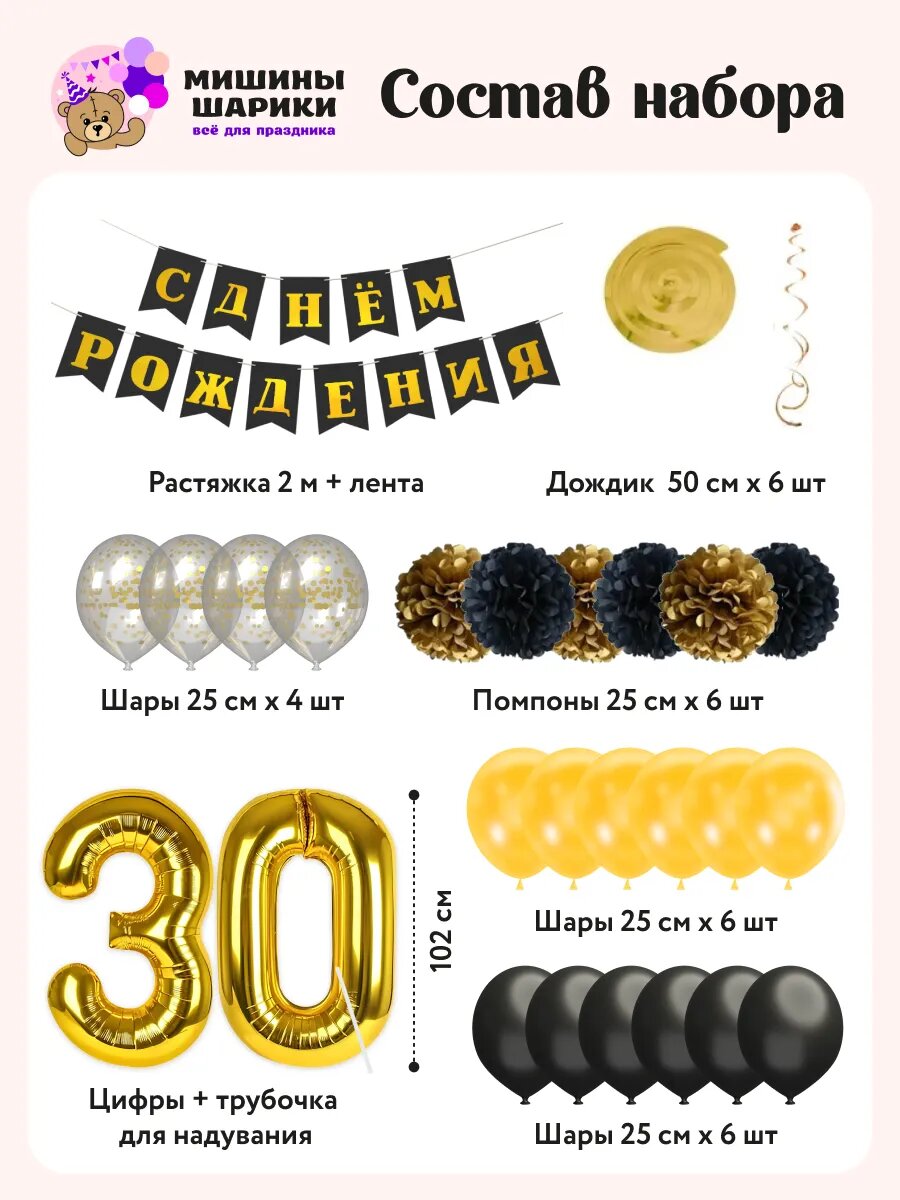 Купить Набор воздушных шаров для фотозоны на день рождения с цифрой 30 лет