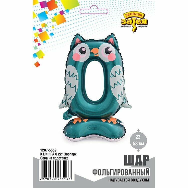 Купить Шар фольгированный "Цифра 0" Сова на подставке, 22"