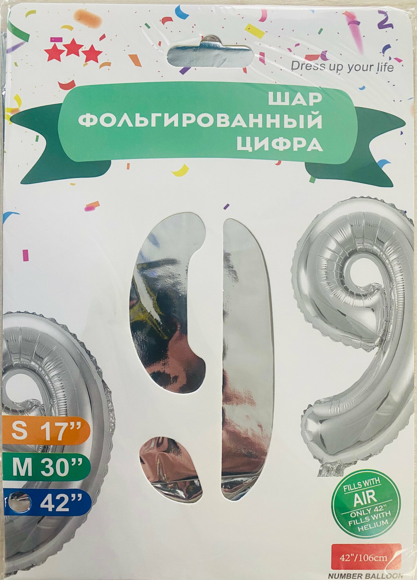 СохранитьЦифра 9, надувная, фольгированая. 106 см. Серебро. интересное: