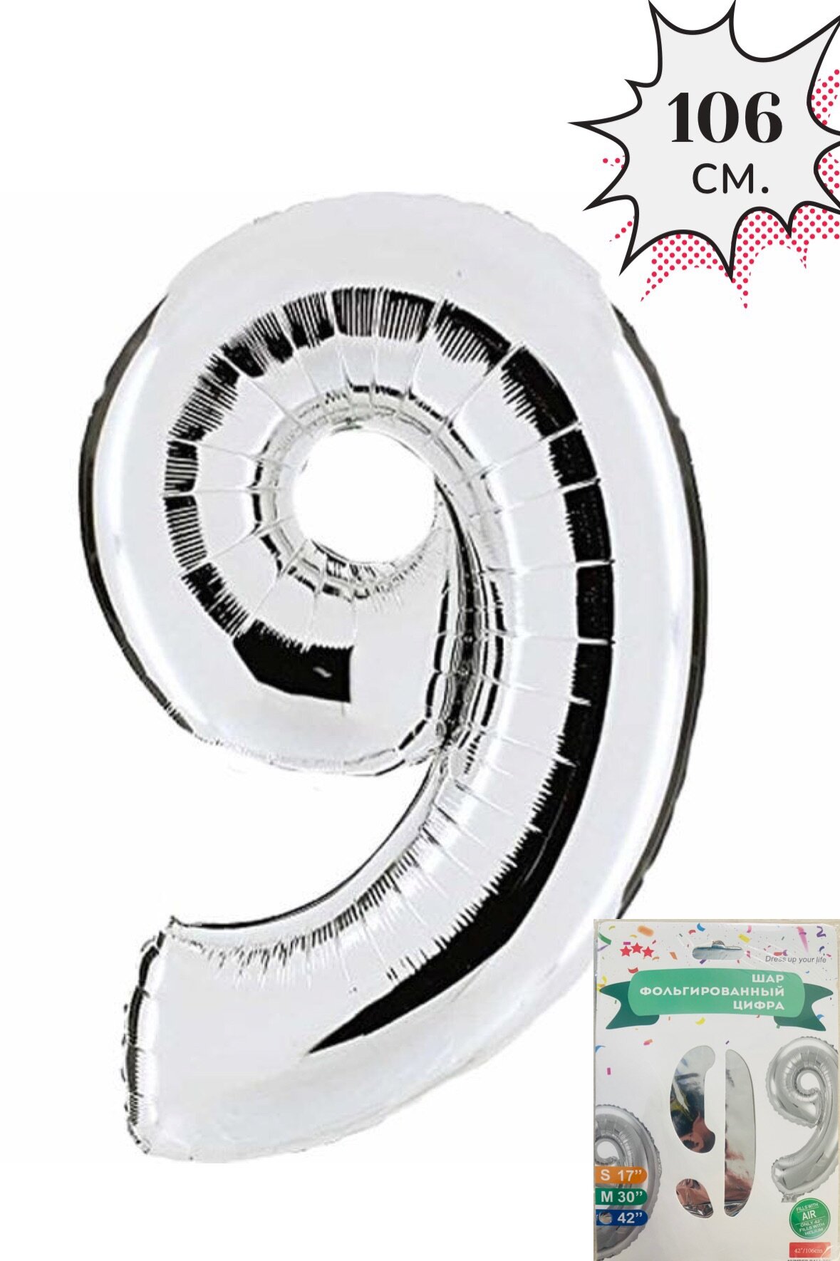 Купить Цифра 9, надувная, фольгированая. 106 см. Серебро.