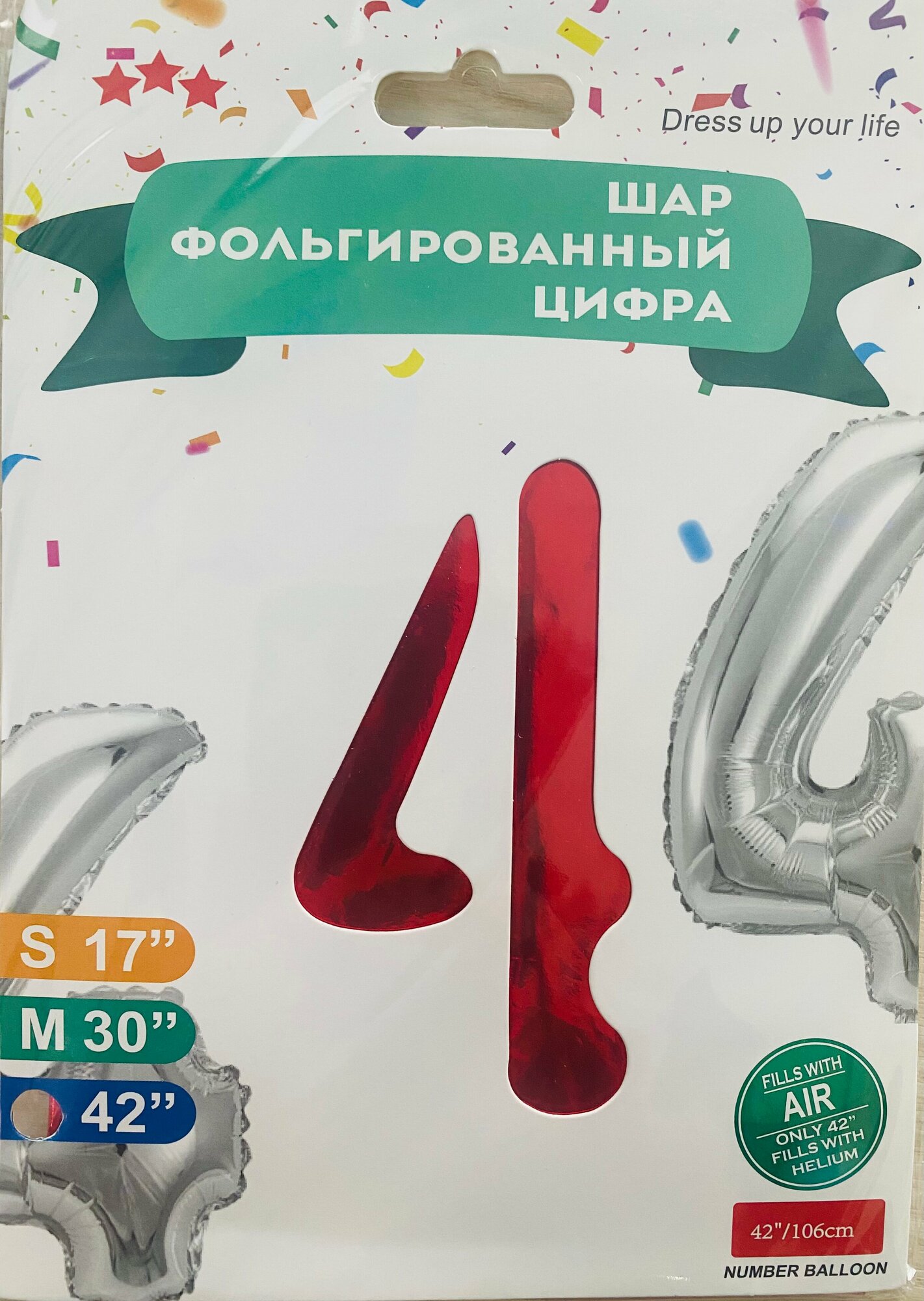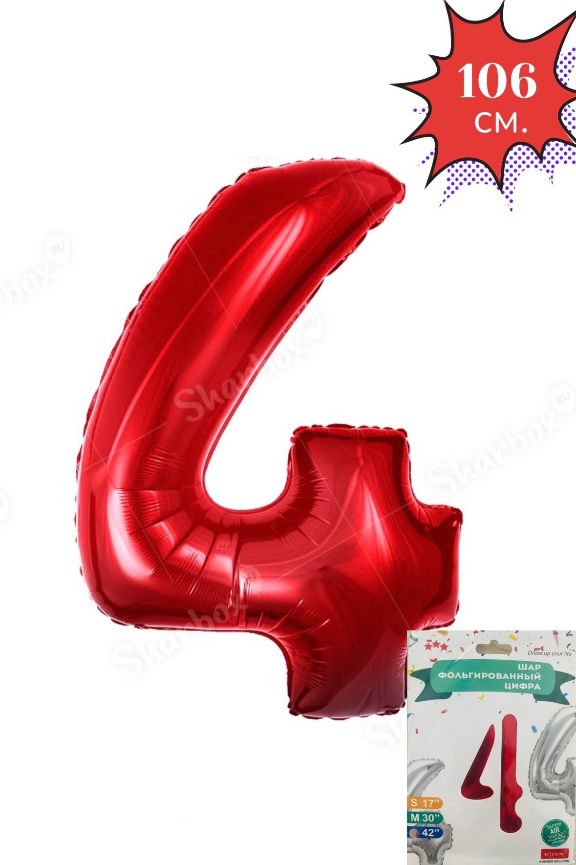 Купить Цифра 4, надувная, фольгированая. 106 см. Красная.