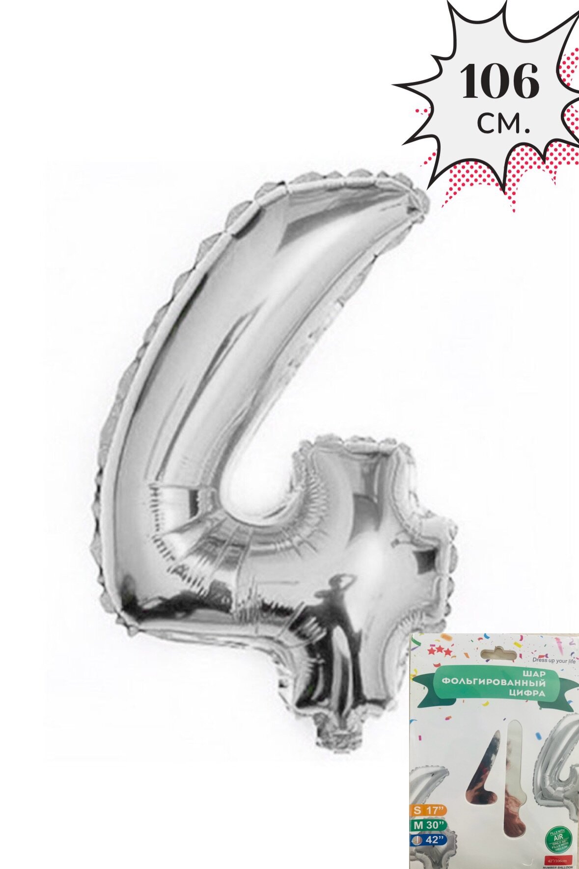 СохранитьЦифра 4, надувная, фольгированая. 106 см. Серебро. интересное: