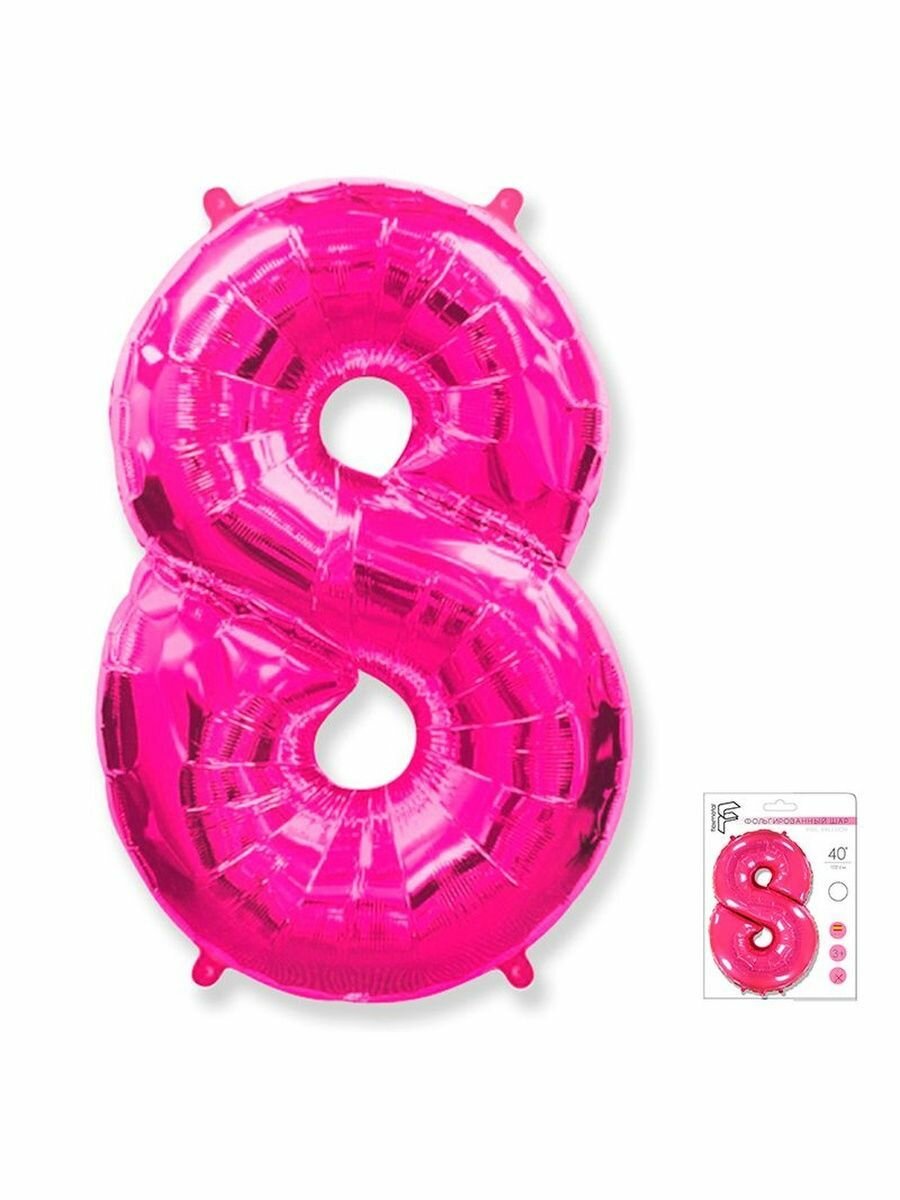 Купить Шар Цифры Фуксия "8" 102 см / 40"/102 см / 1 шт.