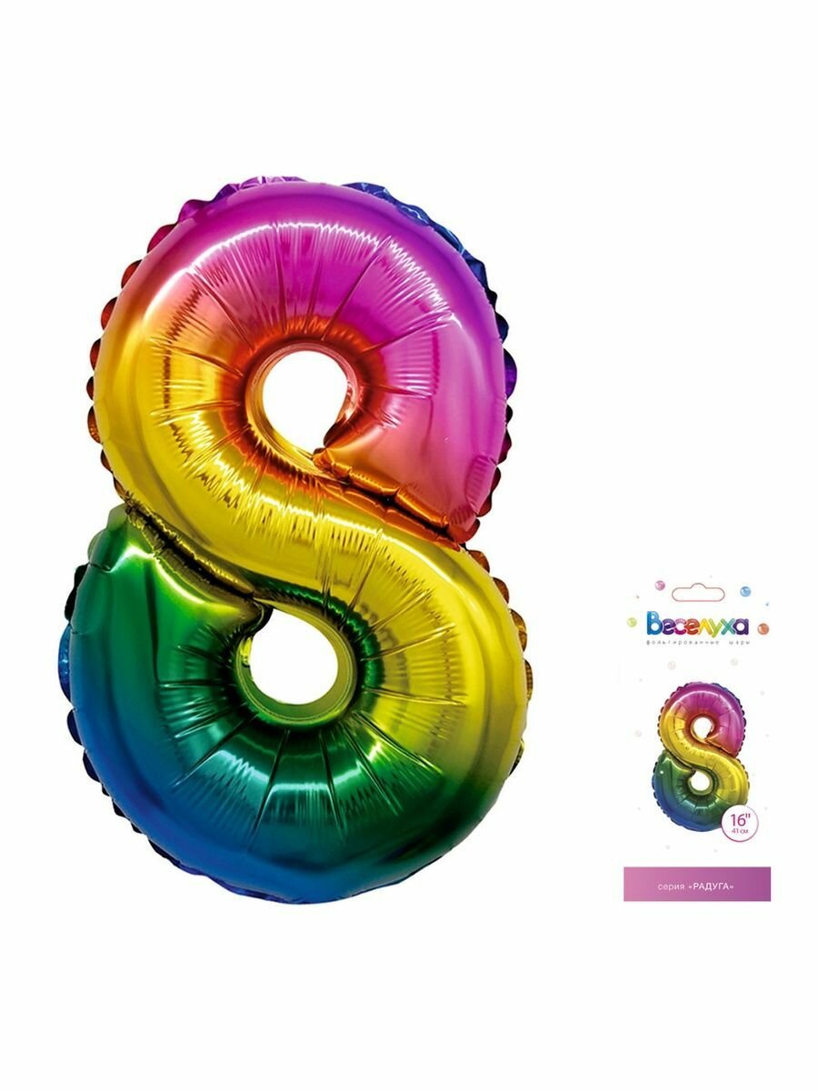 Купить Шар Цифры Радуга "8" 41 см / 16"/41 см / 1 шт.