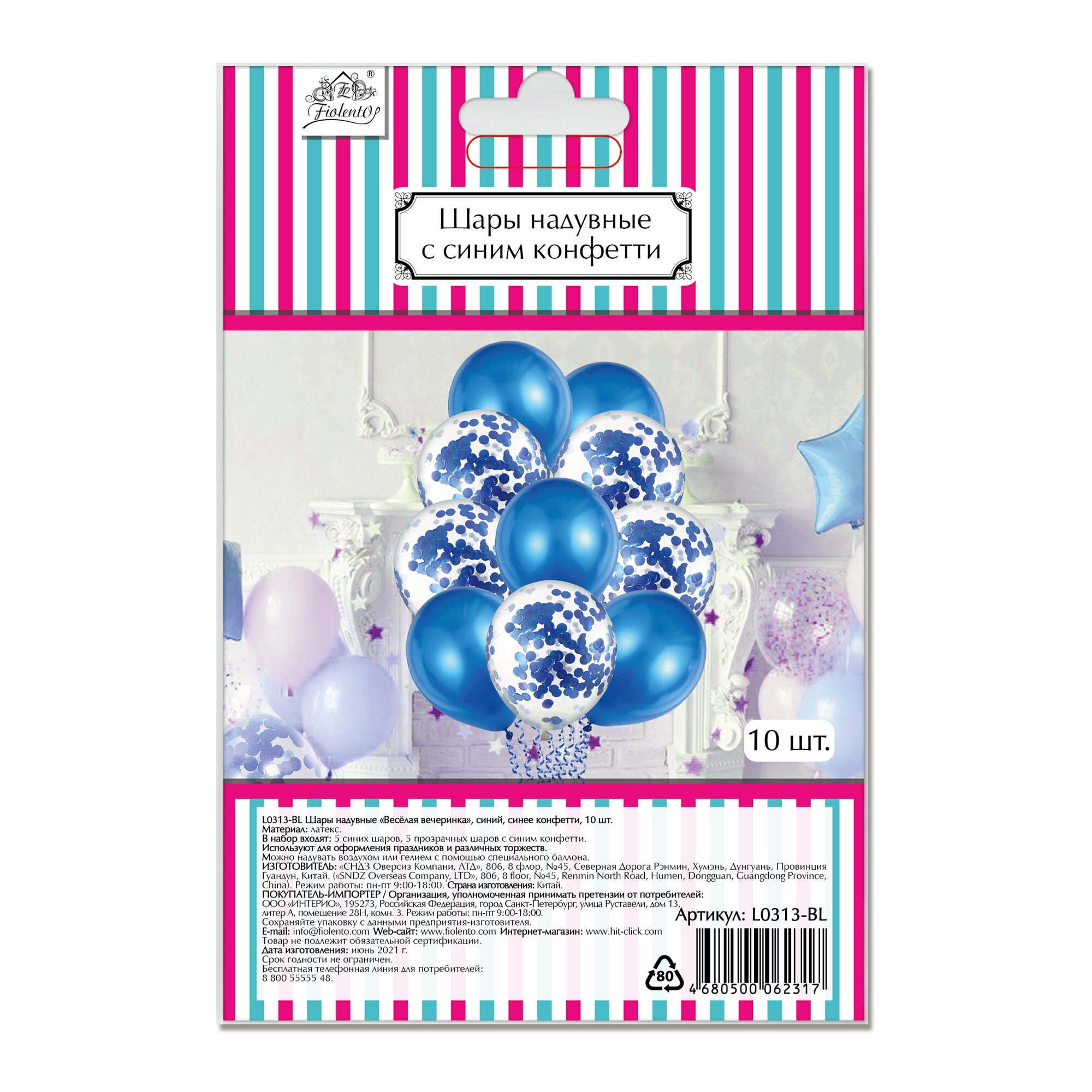 Шары воздушные с синим конфетти "Веселая вечеринка", набор 10 шт, 30 см интересное: