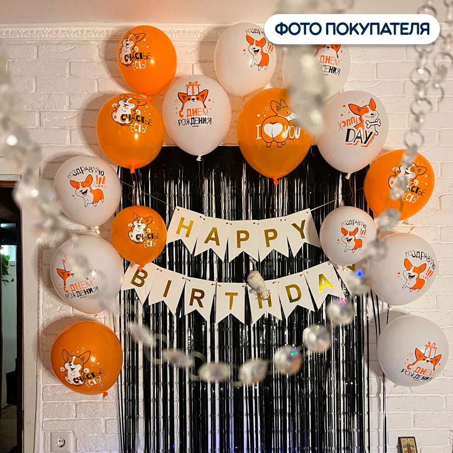 Воздушные шары Latex Occidental С Днём Рождения, Корги, 30 см, набор 15 шт. интересное:
