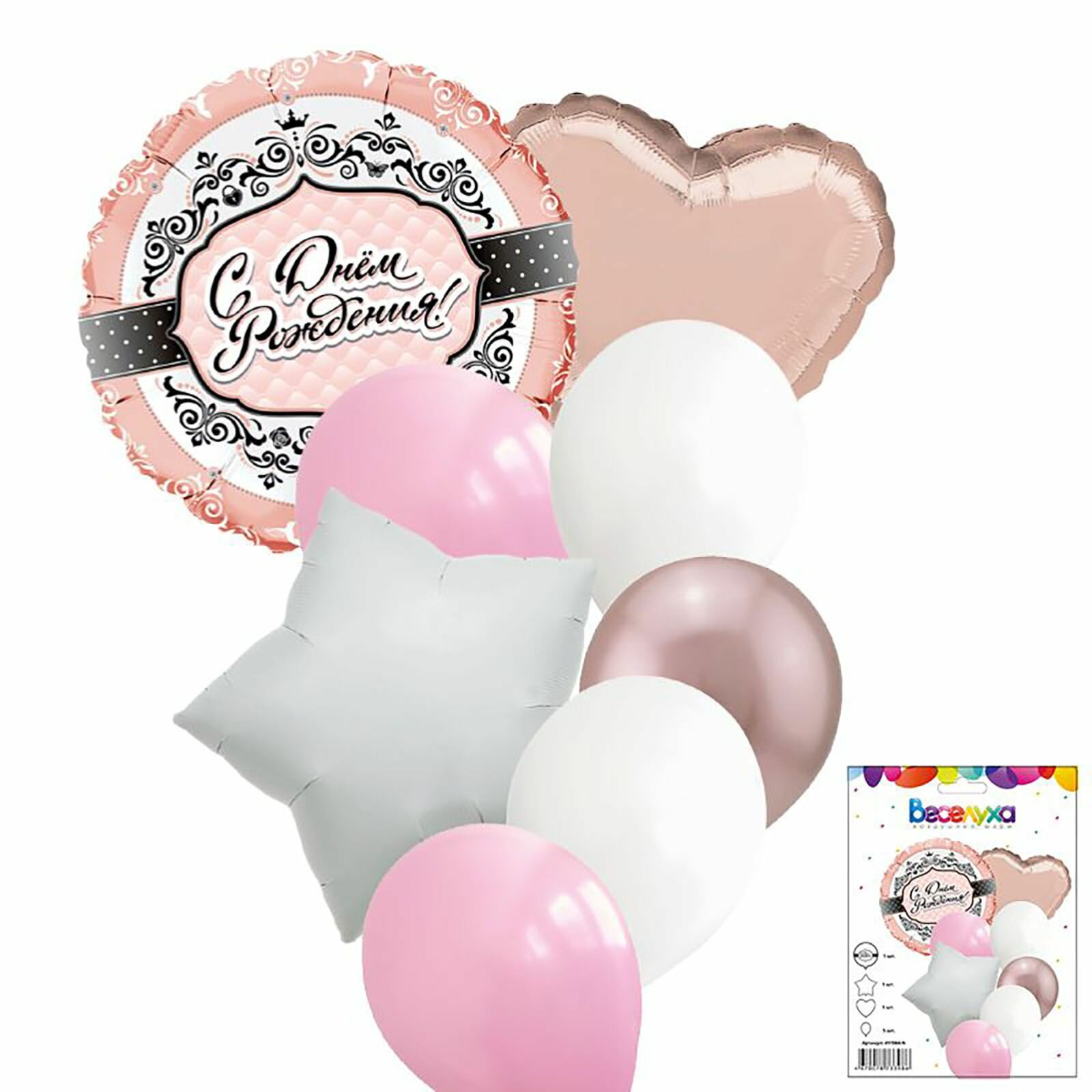 Набор шаров "Розовый и золото" 9 в 1, 30 см, 1 шт