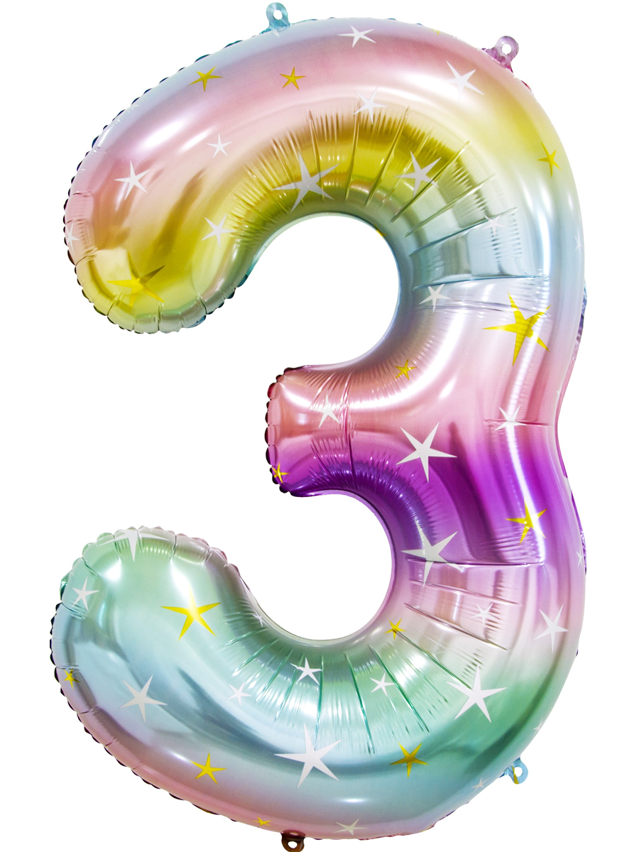 Купить Воздушный шар фольгированный Falali Цифра 3, Радужные Искры, 86 см