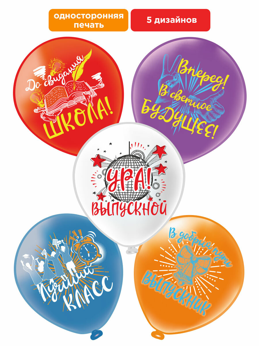 Шарики воздушные для детей "Выпускной! Прощай, школа! Уже не школьники." 30 см набор 10 штук 5 дизайнов