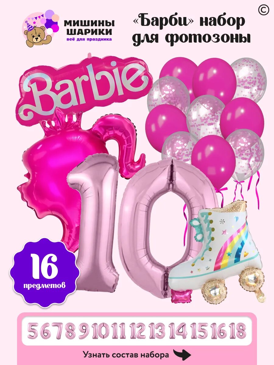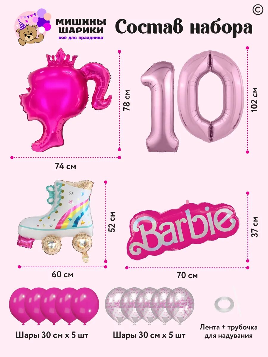 Купить Набор воздушных шаров для фотозоны на день рождения с цифрой 10 лет Barbie