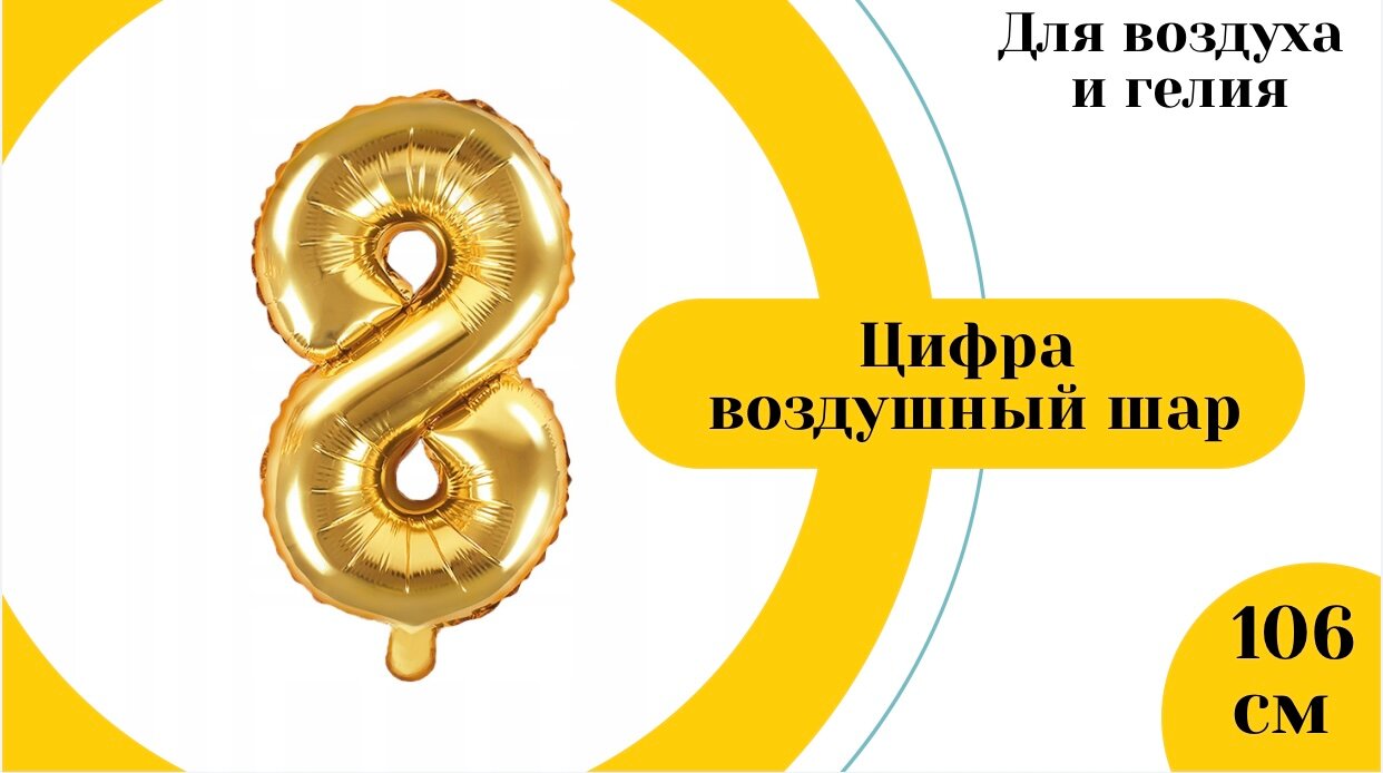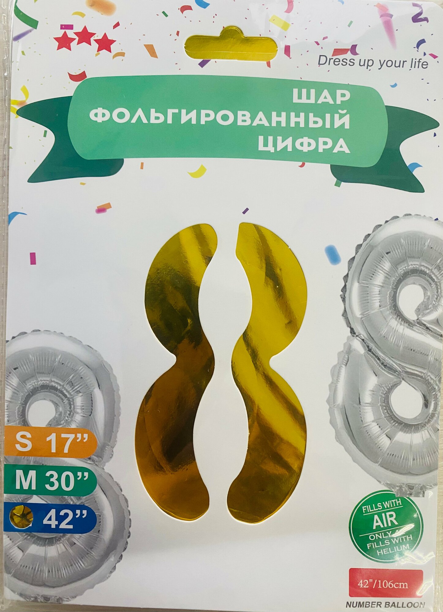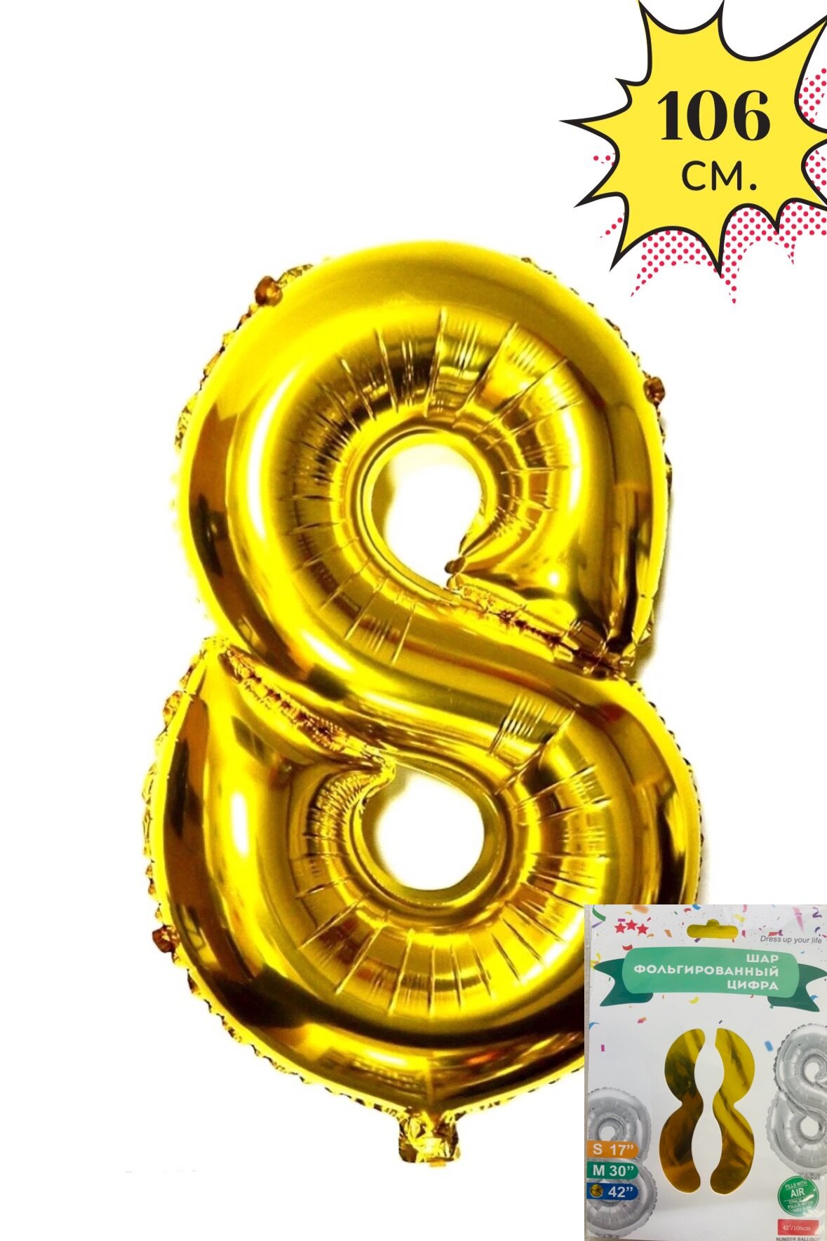 Купить Цифра 8, надувная, фольгированая. 106 см. Золото.