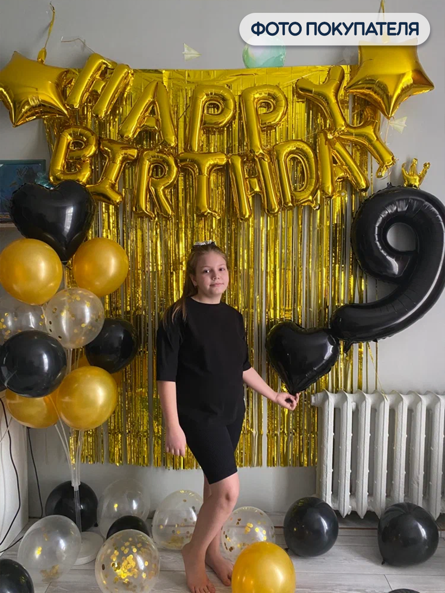 Воздушный шар фольгированный Falali Цифра 9, Золотая корона, черный, 102 см интересное: